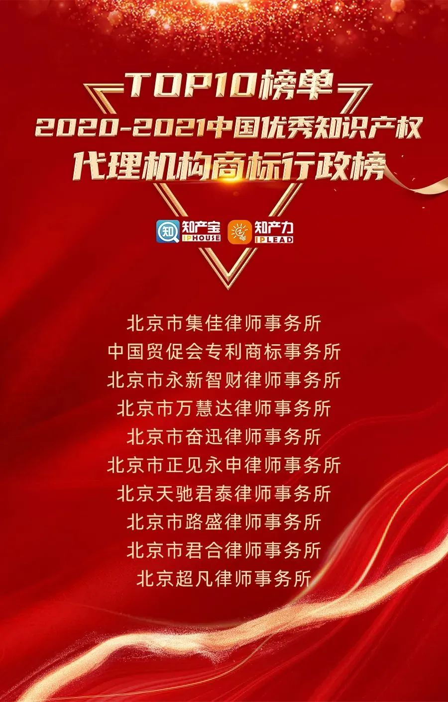 近日,备受业界关注的“2020-2021中国优秀知识产权代理机构榜”正式揭晓,球速体育凭借长期以来在知识产权领域的卓越业绩和处理疑难案件的突出能力,从400余家知识产权代理机构中脱颖而出,荣登“中国优秀知识产权代理机构商标行政榜TOP10”。